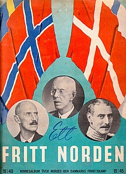 Minnesalbum över Norges och Danmarks frihetskamp 9/4 1940-7/5 1945. Åhlén & Åkerlund 1945. 80 sidor 24x32 cm, ca 400 foton i djuptryck, hft. Ett tummat exemplar av denna patriotiska publikation.